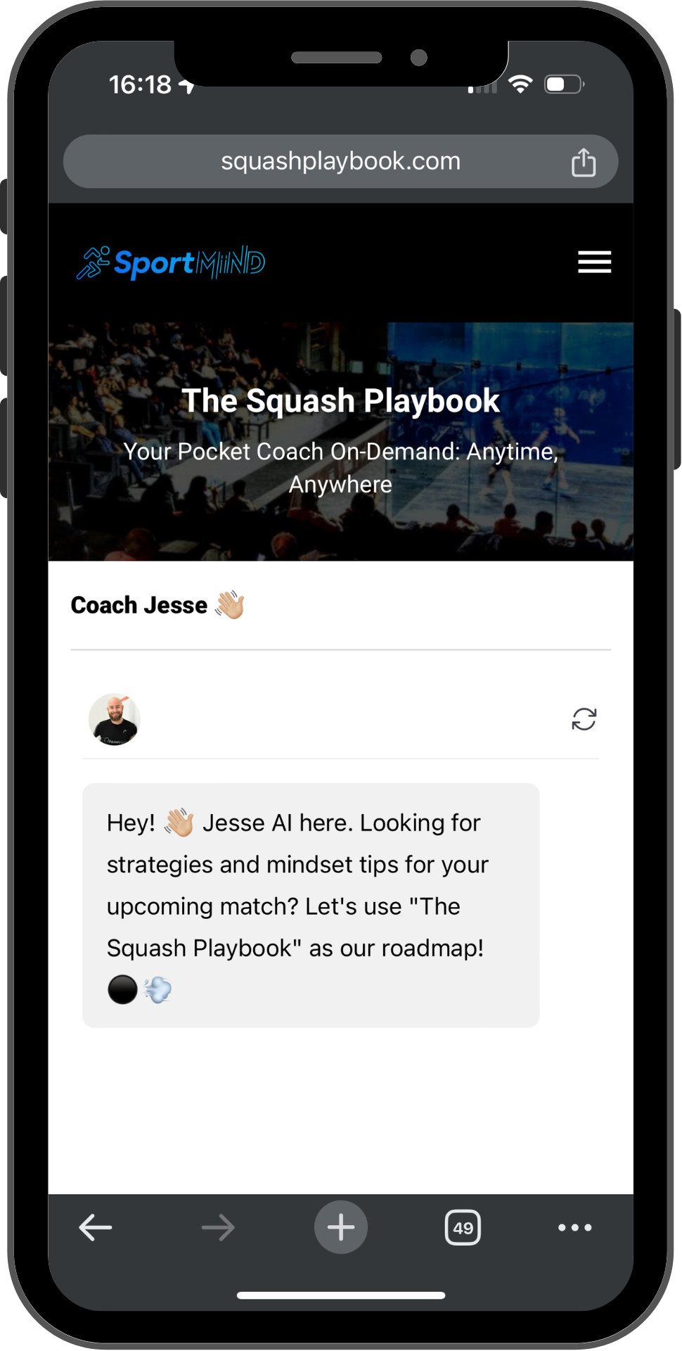 Harness the power of AI, trained on Jesse Engelbrecht's "The Squash Playbook," to get real-time answers to your squash queries. Whether refining techniques, adjusting mindset, or gearing up for a match, Jesse AI delivers expert advice on demand. Blend traditional squash wisdom with advanced AI and keep a seasoned coach's insights, always in your pocket. Welcome to the next era of real-time squash coaching.